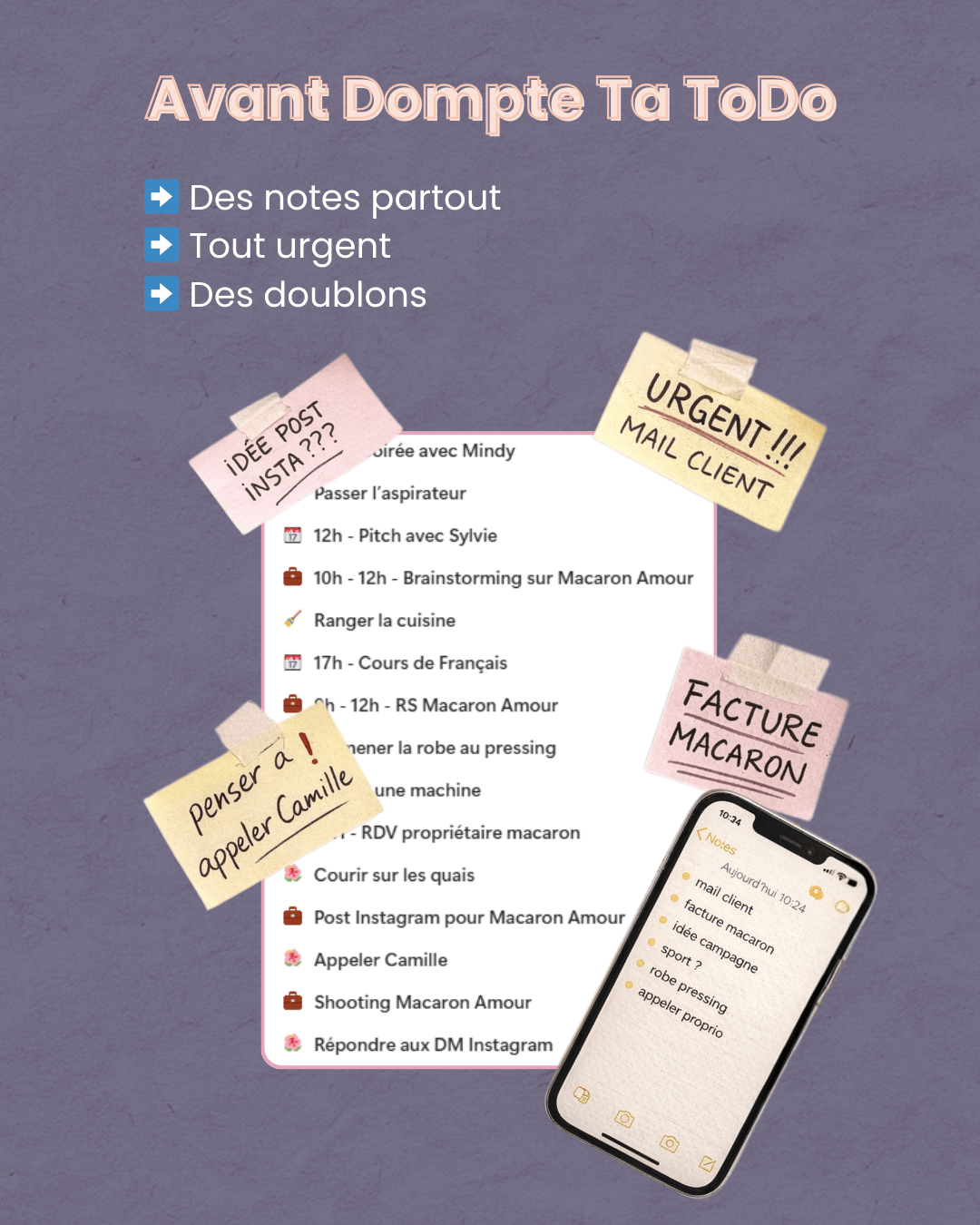 Avant l'Atelier Royal, ma to-do était un vrai chaos. Tout se passait dans ma tête ou sur des post-it, mais ça devenait ingérable et source de frustration.
